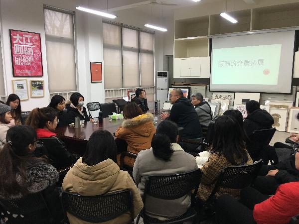 (摄影/通讯:王雨薇)版画介质主题讲座于12月15日下午2点在A4 204教室举行,受邀参加的吴竑老师用自己多年的经验为我们讲解了版画的介质拓展和对艺术的理解。分别围绕着研究介质的必要性、岩彩介质、材质与媒介的作用这几个方面进行了详细的分析,向同学们展示了版画介质的多样性、可能性、丰富性,拓宽了同学的眼界,为创作思路带来全新的发展。